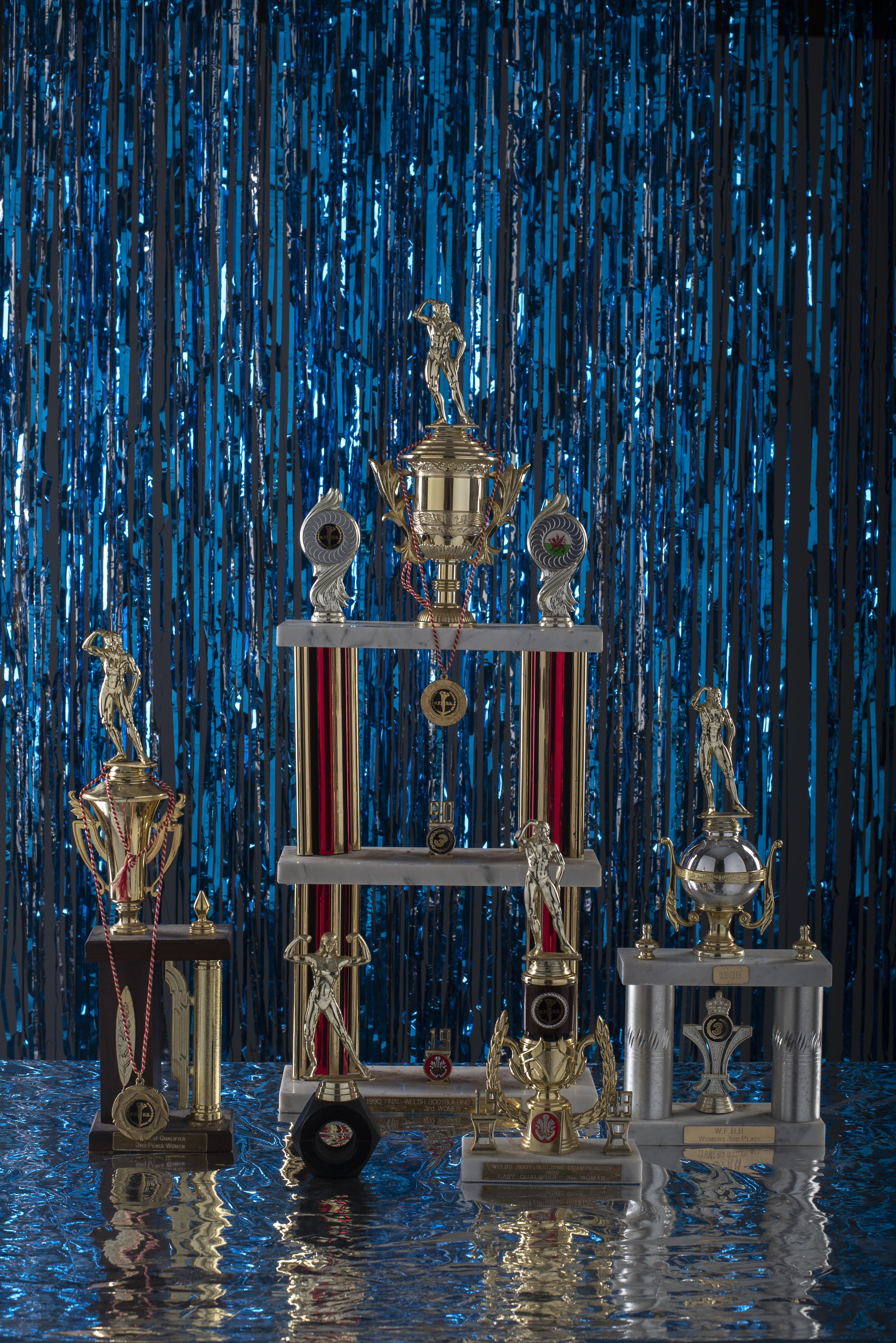 "Muscle Memory" explores Katie's interest in her mum's past as a bodybuilder, an interest that has existed since a young age. One specific image of her mother bodybuilding in the late 80s, which she would stare at as a child, captured Katies' imagination, and as she got older, she would ask her mother questions and learn stories of her mother's past. When Katie and her mother, Julie, moved house in 2017, Katie saw all the bodybuilding memorabilia, the trophies her mother won, books she used for training, archive imagery, and even the posing costumes and workout clothes she wore. Katie's relationship with Julie is very close and important to her, so she wanted the work to be a shrine to her mother's past and for people to learn how special her mother is.